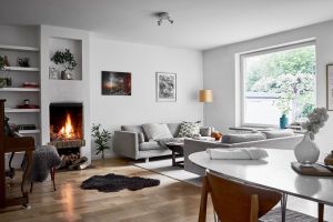 56-ruuduse renoveeritud korteri elutuba, püüab pilku maitseka sisekujundusega