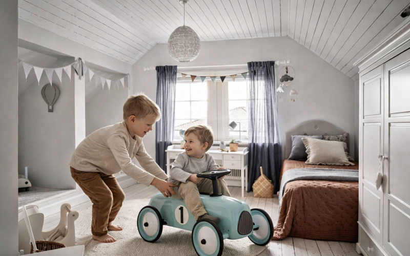 Valge interjöör, koos naturaalsete puidust põrandate ja kahvaturoosa aktsentidega, loob harmoonilise ja läbimõeldud visuaalse kompositsiooni, kus iga element täiendab teist, luues rahuliku ja elegantse keskkonna.