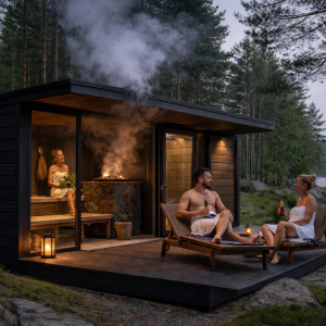 Saunade siseviimistluses kasutatakse termotöödeldud haava ja radiata mändi, mis lisavad ruumile soojust ja luksuslikku välimust. Erilise mugavuse tagab Saunum Base S ventilatsiooniseade, mis ühtlustab õhuniiskuse ja temperatuuri, pakkudes mahedamat leili ja pikemaid saunaseansse. Huum Hive keris saunaruumis, millel on suur kivide mahutavus ja viieaastane garantii, lisab traditsioonilist saunaelamust.