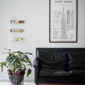 Lisaks on igat seinaosa suurepäraselt ära kasutatud. Diivani vastasseinas tugitoolide taga seinas on string riiulite süsteem, pruuni tooni riiulitega, kuhu paigutatud mitmed raamatud ja sisustusdetailid. Diivani vasakule küljele seina juurde paigutatud TV- kapp koos TV-ga. Diivani paremale küljele seinale paigaldatud raamitud poster/foto, millel leiduvad värvitoonid, ühtivad ülejäänud ruumis leiduvate toonidega.