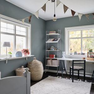 Taaskasutuse teema on selles toas samuti väga olulisel kohal. Näiteks lastevoodi, mis on pikendatav ja seega praktiline kasvava lapse jaoks, on leitud taaskasutusest. Voodi vajas põhjalikku värvimist ja korrastamist, et sobituda interjööriga – valiti klassikaline valge toon, mis sulandub hästi ülejäänud ruumi sisustusse. Sama saatus tabas riiulit ja väikest kummutit, mis samuti said uue elu tänu Vivacolori mati tooni valgele mööblivärvile. Mööbliesemed värviti kolm korda, et saavutada ühtlane ja vastupidav tulemus, mis sobituks harmooniliselt mereteemalisse keskkonda. Kõik need detailid, värvitoonid ja sisustuselemendid moodustavad koos terviku, mis teeb sellest väikesest lastetoast erilise koha, kus on mõnus mängida, lugeda ja unistada. Ruumi iga nurk on täidetud mõtte ja armastusega, luues keskkonna, mis on nii visuaalselt köitev kui ka praktiline lapse jaoks, pakkudes samas piisavalt ruumi fantaasiaks ja loovuseks.