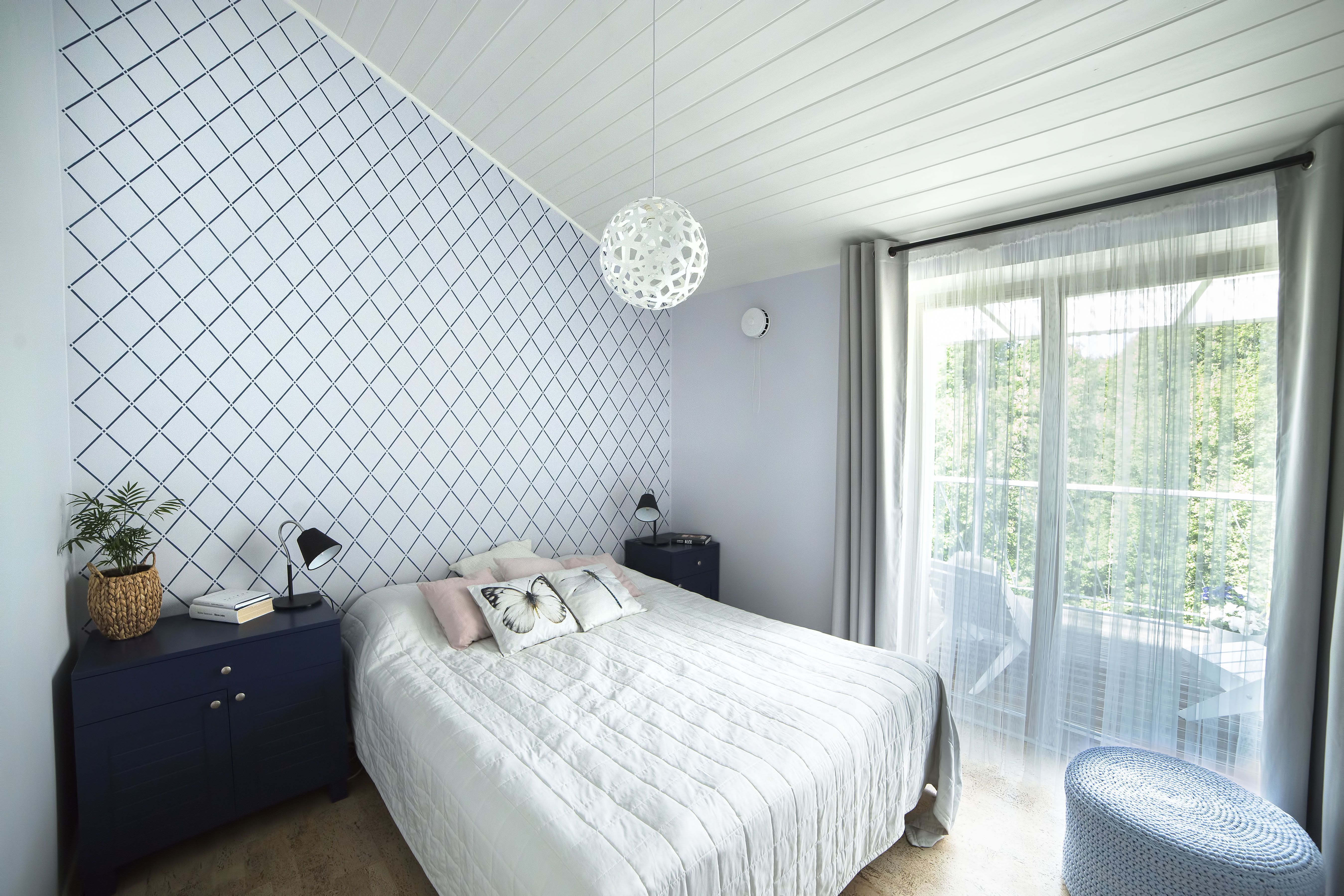 Seinašabloon Põimitud rombid. Magamistuba Kristiines, Tallinn.Fotograaf Gytis Dovydaitis