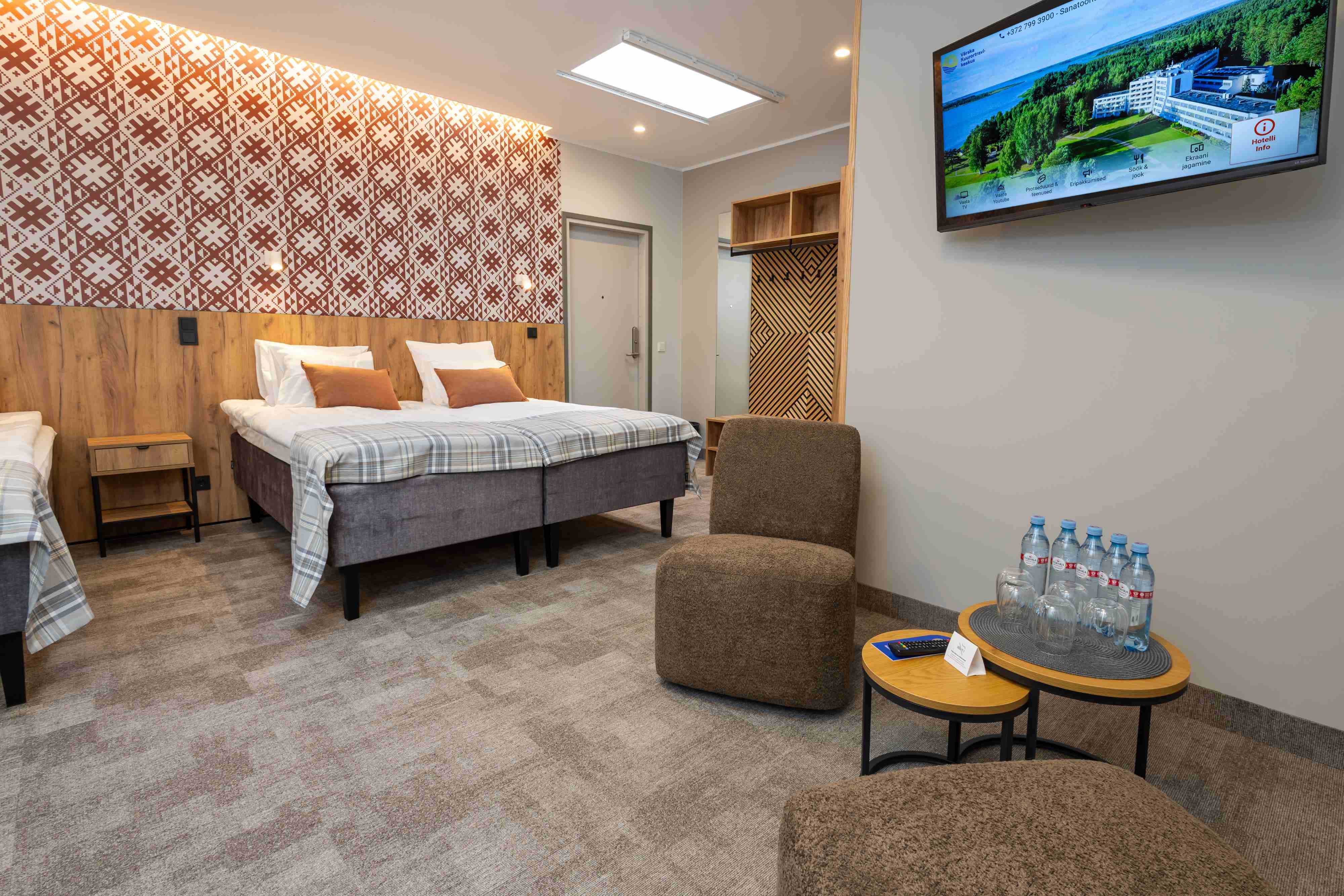 Veekeskuse hotelli toad on värskelt renoveeritud ning täielikult uuendatud hotelliosa avati 2026. aasta märtsis. Hotelli lisandus ka kaks tuba lemmikloomaga reisijatele. Tubadest avanevad vaated rahustavale männimetsale, lõbusale veepargile või tähistaevale katuseakna-valgustunneli näol. Osadel tubadel on pääs ka terrassile.