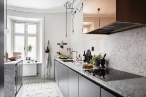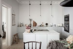 2019. aasta renoveerimistööde käigus toimus olulisi muutusi korteri üldises planeeringus, mille üks märkimisväärsemaid elemente oli köögi ja elutoa vahelise seina eemaldamine. See otsus muutis kogu ruumi avaraks ja ühtlaseks, avades suurepärase võimaluse valguse ja õhu vaba liikumiseks läbi korteri. Avatud ruum ühendab köögi ja elutoa üheks harmooniliseks tervikuks, kus igal detailil on oma tähendus ja eesmärk. Selle tulemusel on tekkinud lausa monumentaalsed ruumimõõtmed, mis loovad modernse ja mugava elukeskkonna, mida iseloomustab ruumilisus ja valgusküllus.